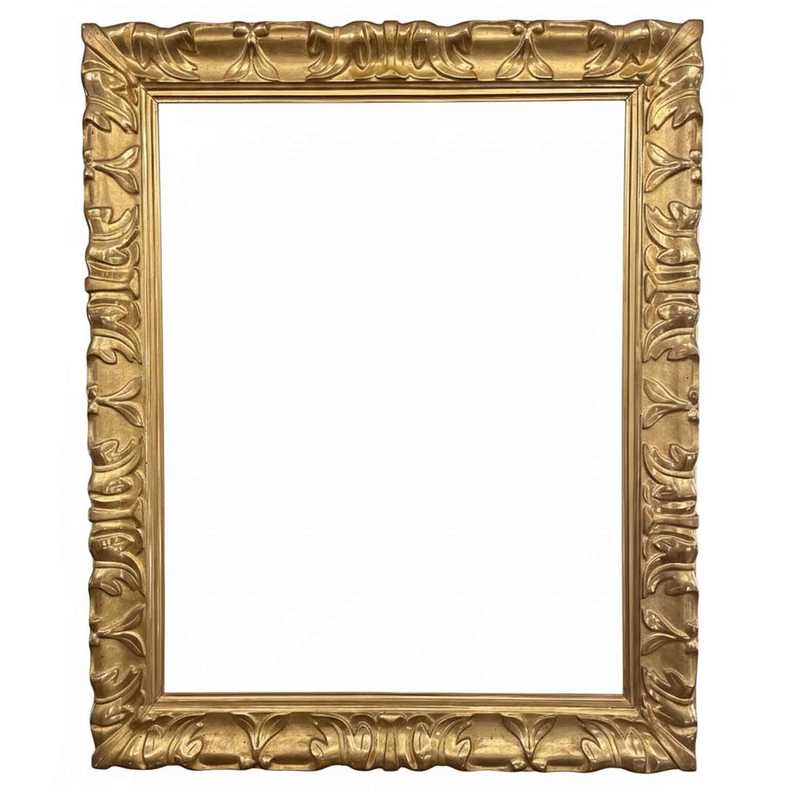Antique carved and gilded Emilian Italian frame in good condition. This antique frame is great both for a mirror or a painting, it is rectangular shaped. It was regilded in 1800 and the back was enlarged to accommodate a larger painting. Ideal for a mirror or a painting. Italy, Emilia Region, 1600.
