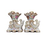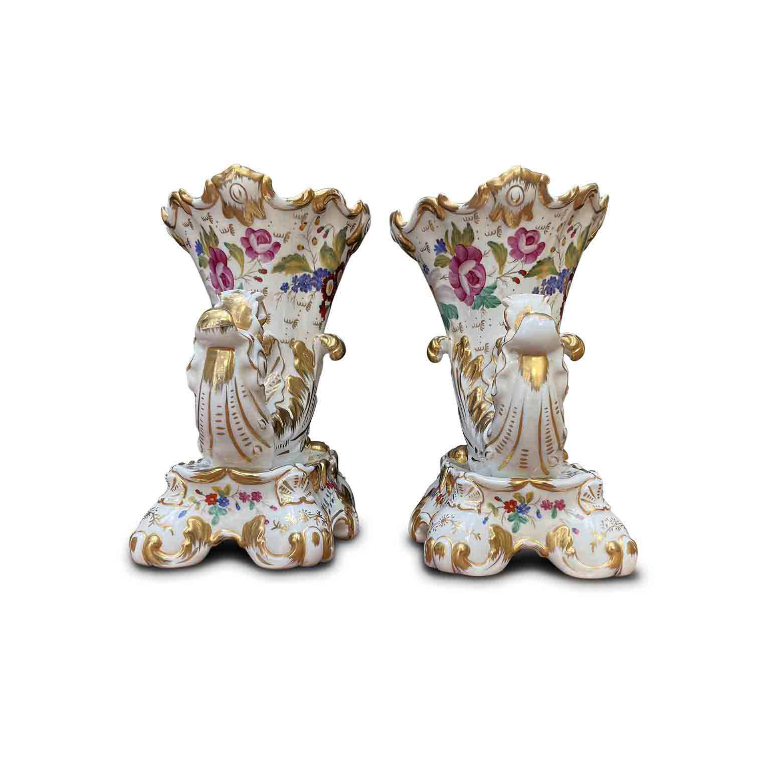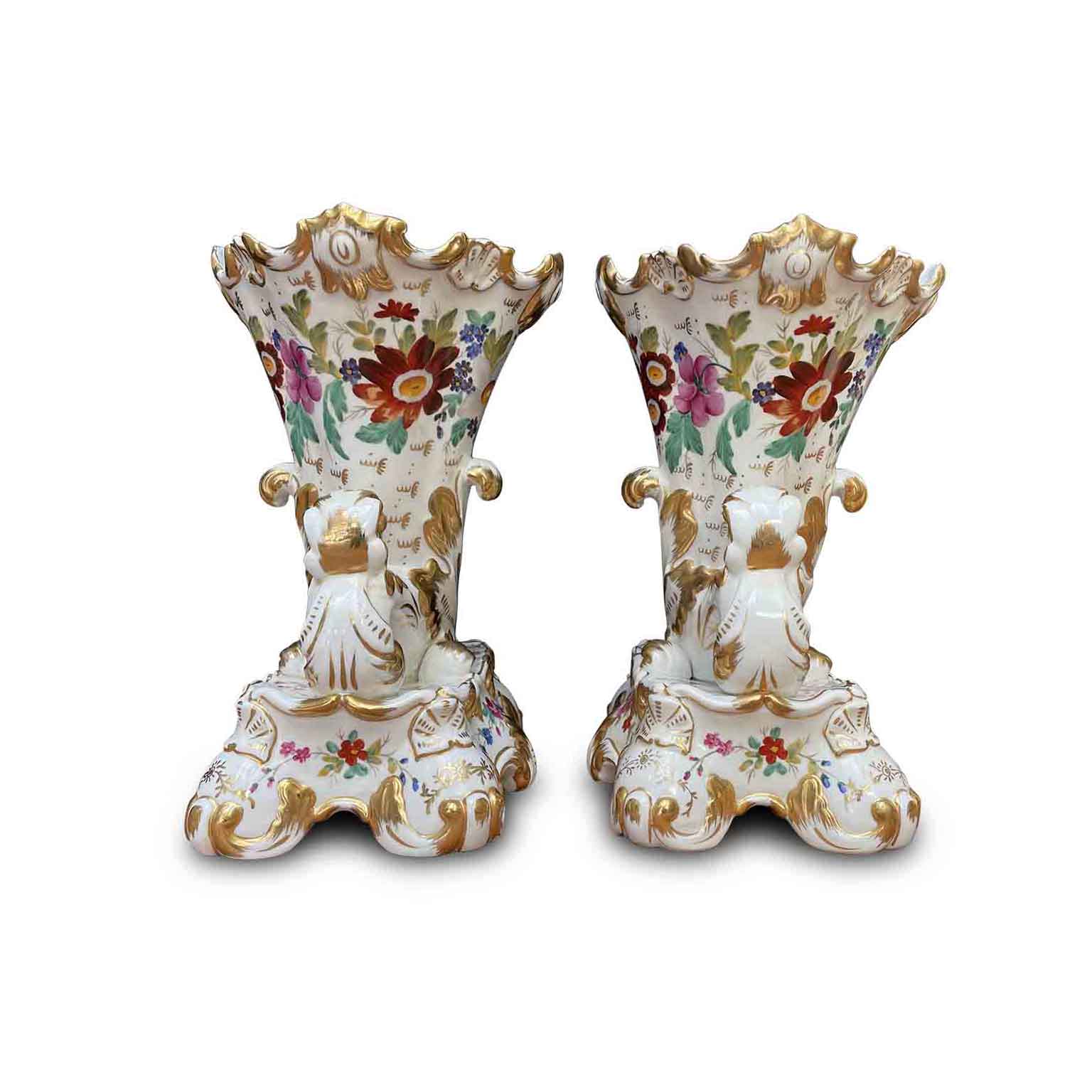 19th Century French Tulipières Pair of Porcelain Cornucopia Shaped Vases