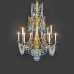 Empire Genoese Crystal and Gilt Wood Twelve-Light Chandelier