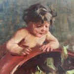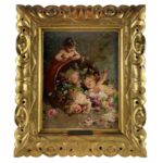 The work is in excellent condition within a carved wooden frame gilded in fine gold. On the lower edge of the frame, there is a brass plate with the author of the work and only the date of birth, the painter died in 1918.