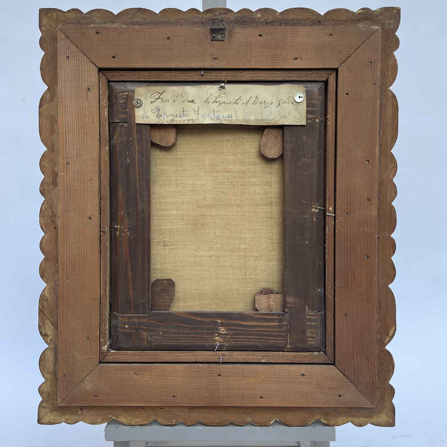 The canvas measures 30 x 24 cm and comes from a private collection in Milan. On the back of the frame is an inscription with title, author and dedication to his friend.