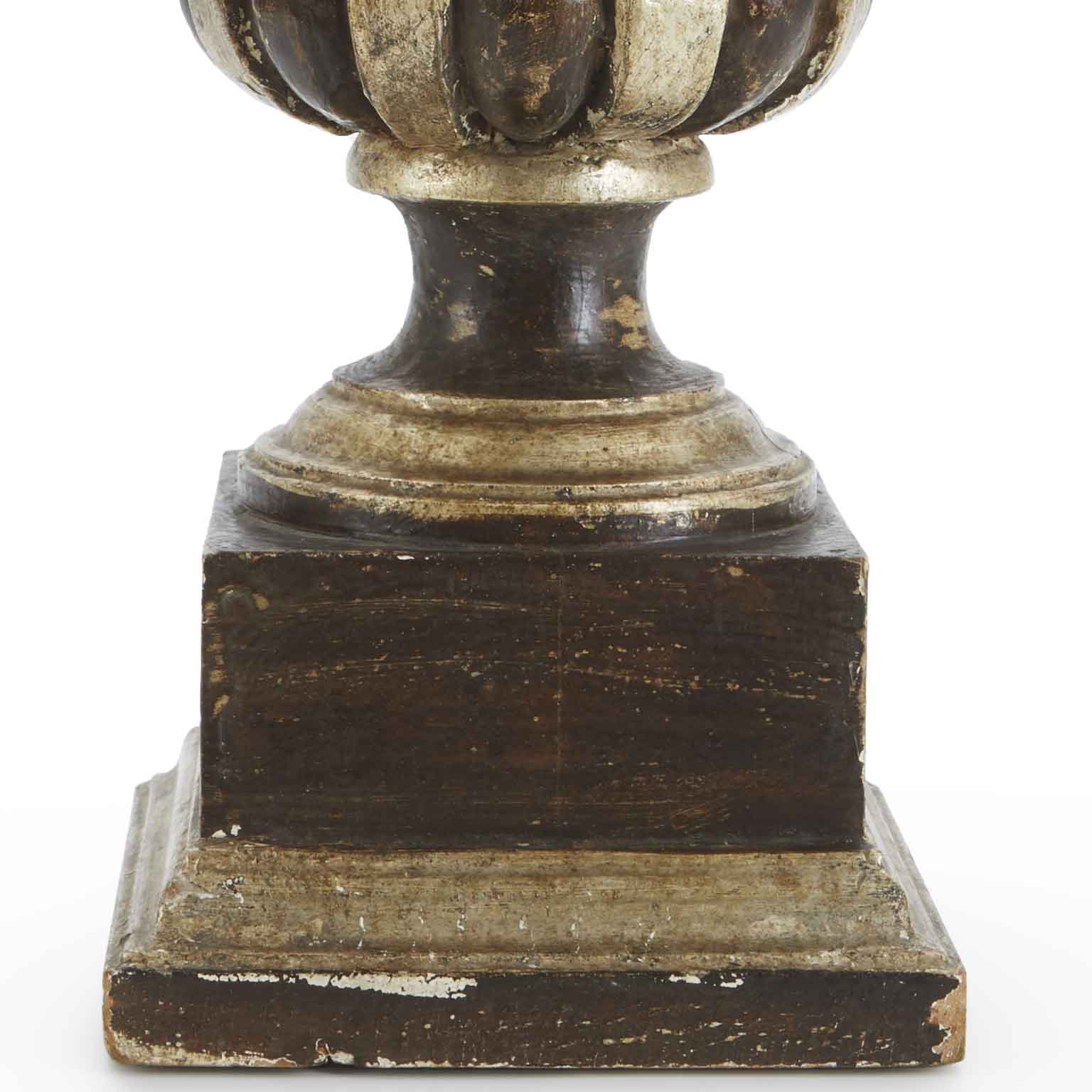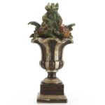 An Italian Centerpiece a Painted deeply carved and silvered wooden vase. First half 20th century