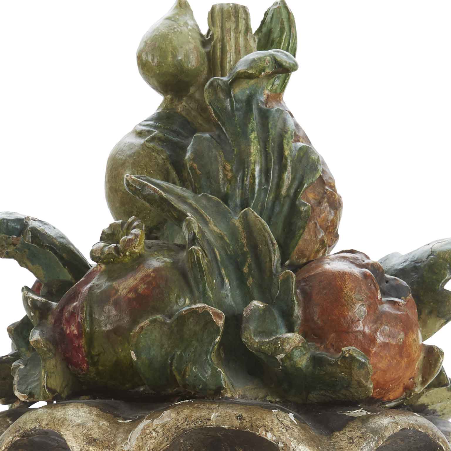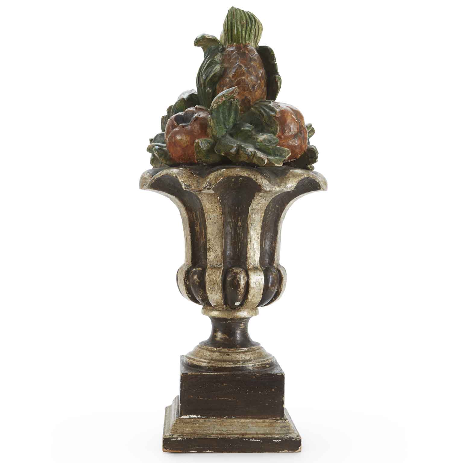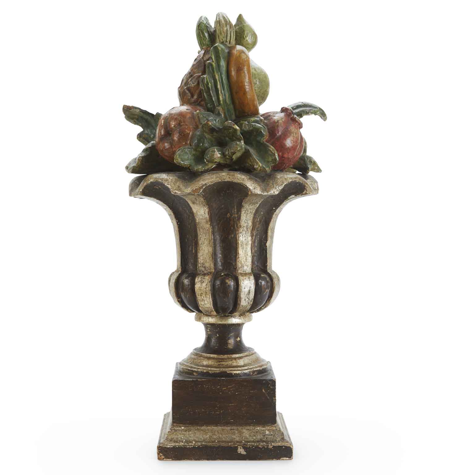 Italian Centerpiece Tuscan Painted fruit carved and silvered wooden vase
