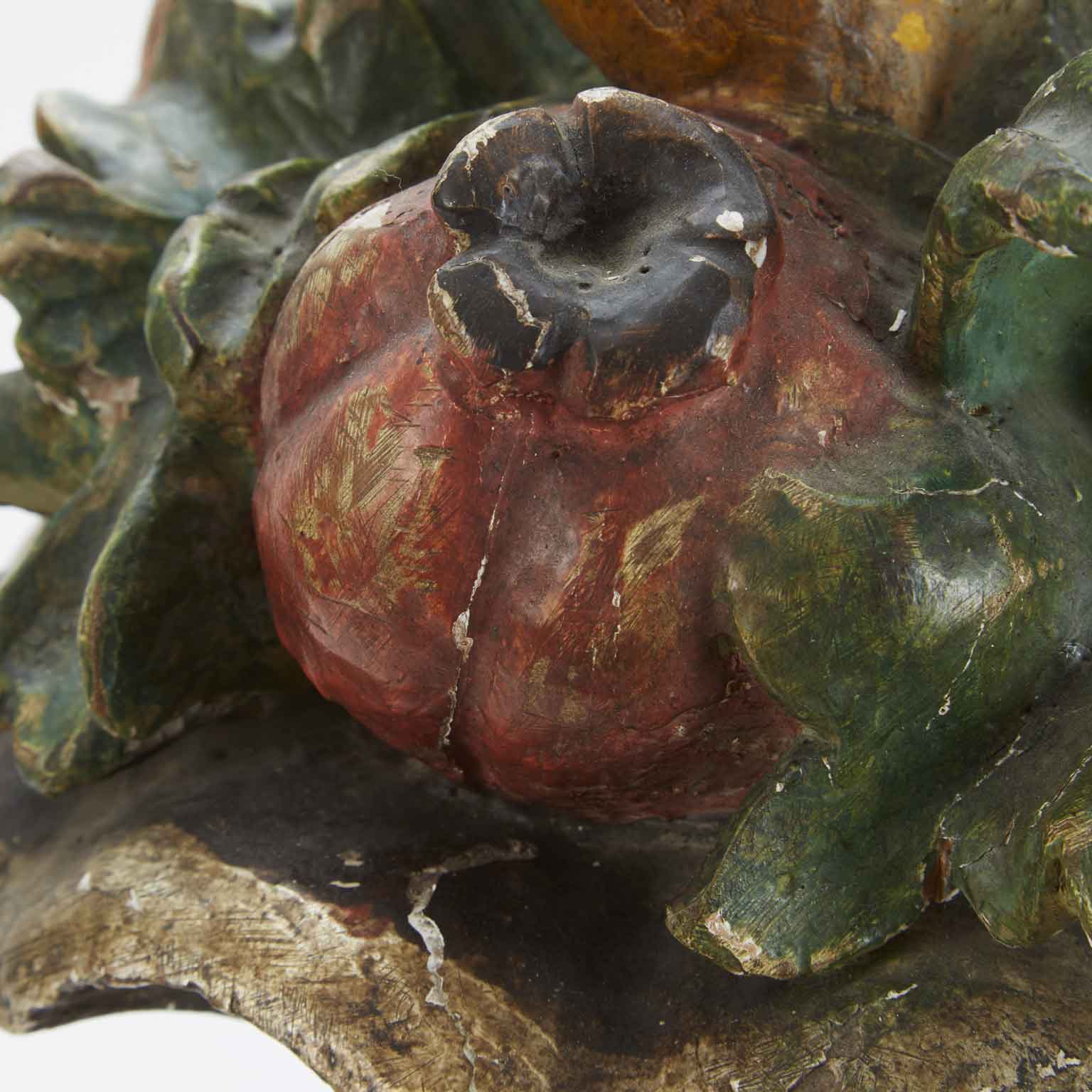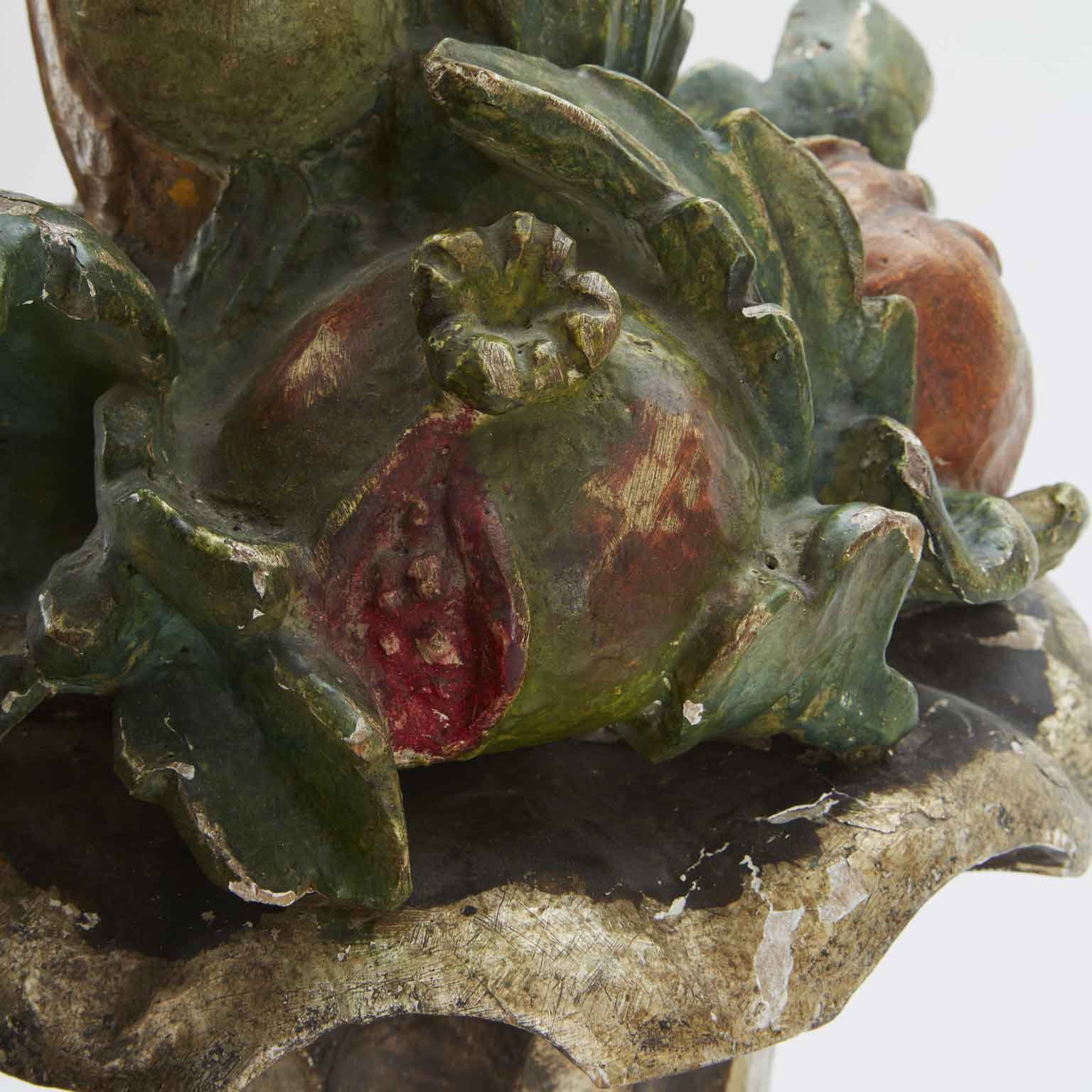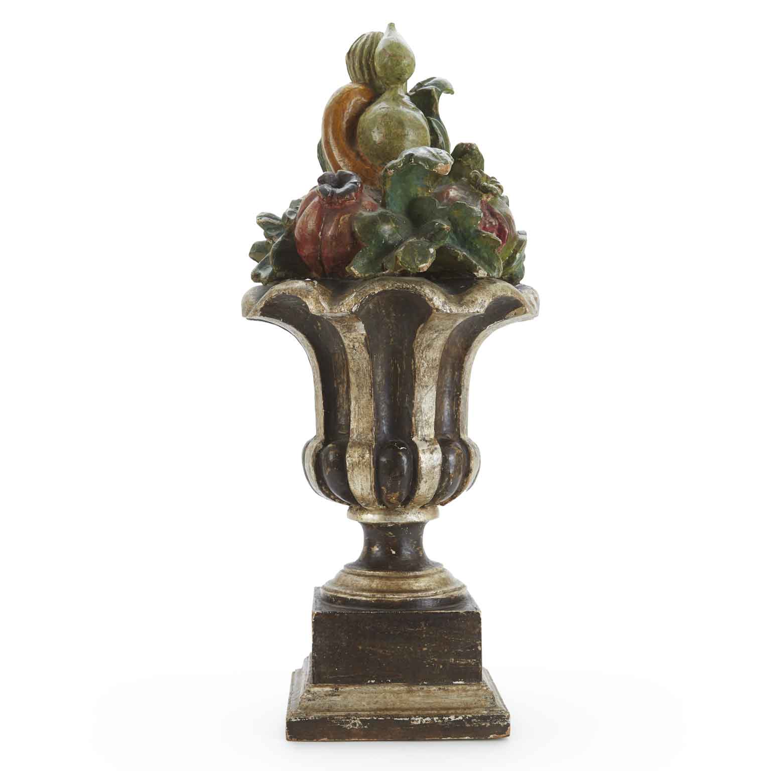 Italian Centerpiece Tuscan Painted fruit carved and silvered wooden vase