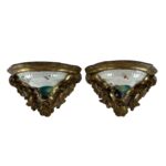 Pair of Italian Antique Gilt Wood Shelves With Majolica