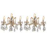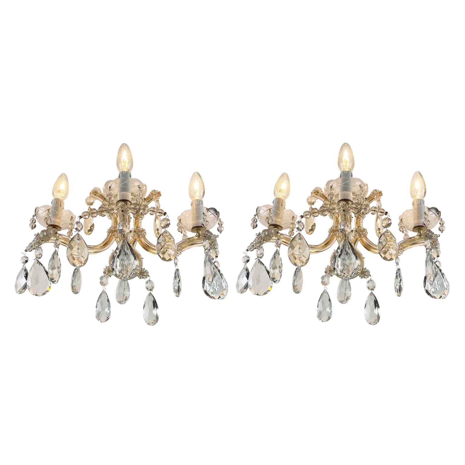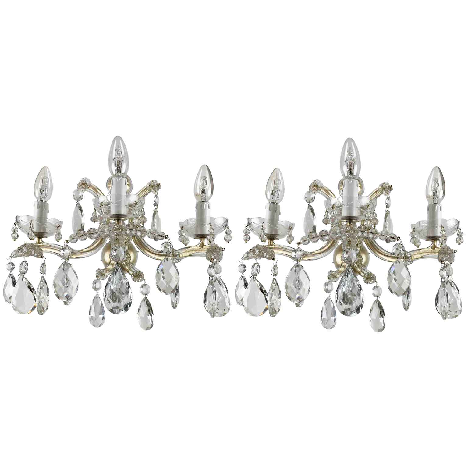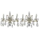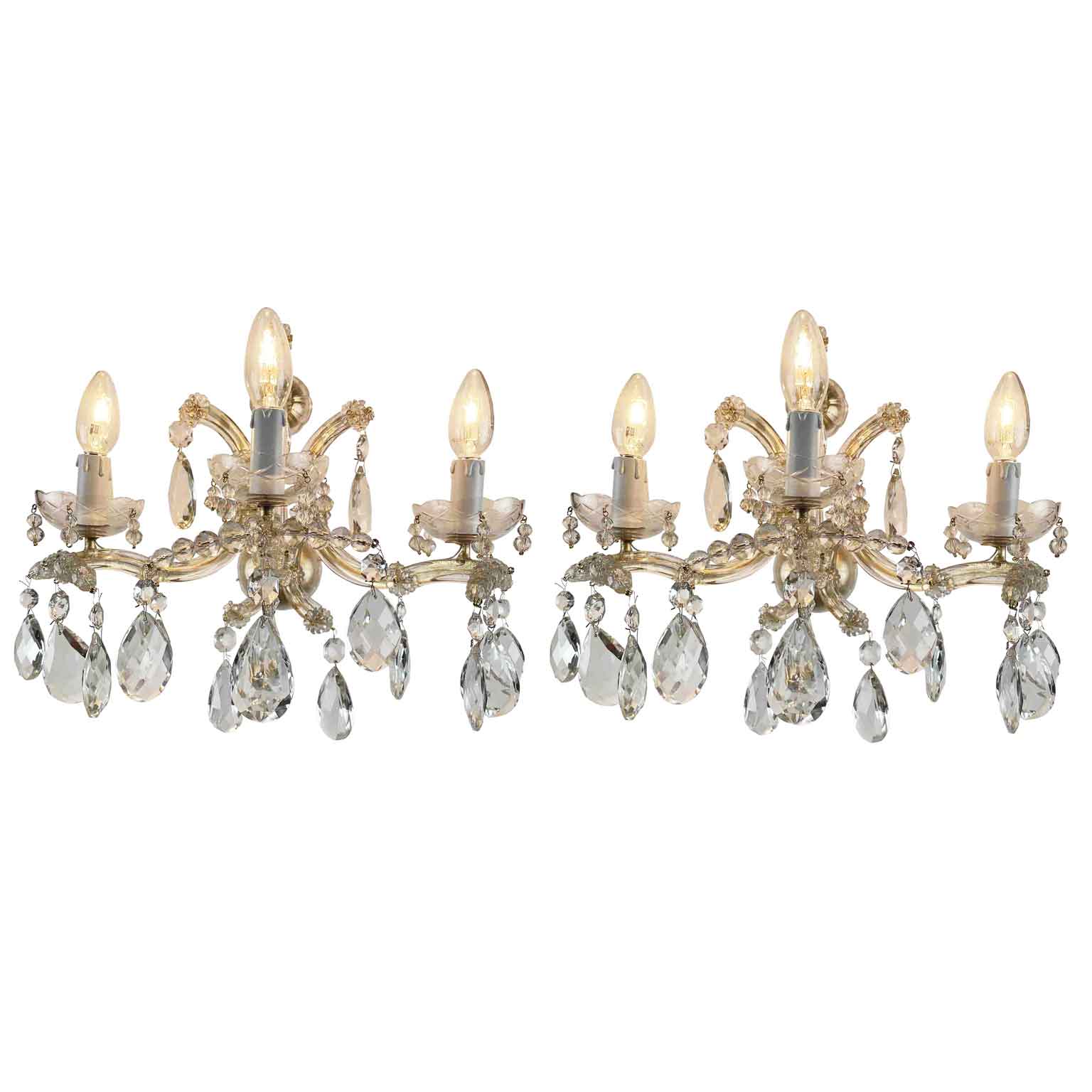 Pair of Italian Crystal Sconces Three-lights Marie Therese Style 1950s