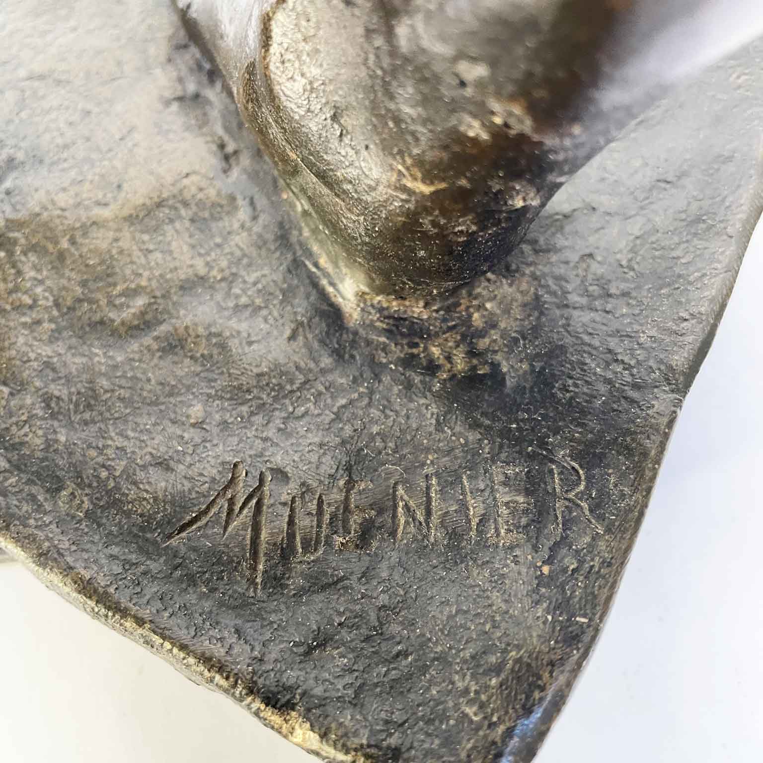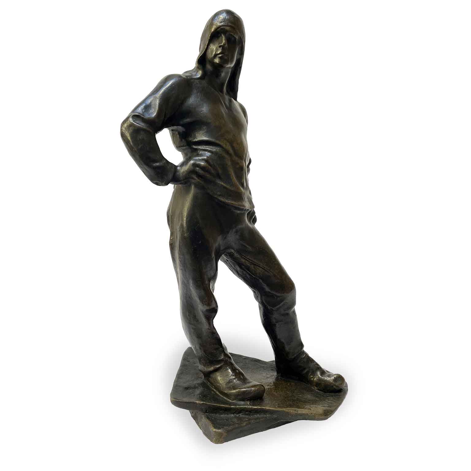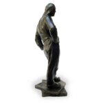 The Dockworker of Antwerp by Meunier, better known as Le debardeur du port d’Anverse, by the famous Belgian sculptor Costantin Emile Meunier (1831-1905). Dockworkers are the men who load and unload ships, those we now more commonly refer to as dockers. While avoiding miserabilism, Meunier’s Antwerp Dockworker has become an archetypal representation of the alienation of individuals through work. An early wax version was exhibited as early as 1885 in Brussels at the Salon des XX. When the large plaster cast was presented in Paris at the Salon de la Société nationale des Beaux-arts in 1889, critics were enthusiastic: “… never before has such tragic and moving expression, such energy, such oppression, such suffering and such resignation been given to a figure with such intensity.” As early as 1890, the French state purchased this bronze specimen. In Belgium, a life-size dockworker was erected in the main square of Antwerp, becoming a symbol of the city. After 1893, bronze reductions of various sizes were made, as well as a bust, naturally entitled Antwerp.