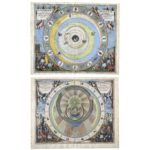Tratte da Harmonia Macrocosmica, un atlante degli astri risalente al Secolo d’oro della cartografia olandese, mappa la struttura del cielo in ventinove straordinarie tavole a doppia pagina, pubblicato ad Amsterdam nel 1708 da Gerard Valk and Petrus Schenk. Le meravigliose carte celesti di questa opera astronomica illustrano il movimento di sole e pianeti e le costellazioni, offrendo un excursus storico delle diverse teorie del cosmo enunciate da Tolomeo, Copernico e Tycho Brahe, più che nuove intuizioni scientifiche. La bellezza del disegno e la profusione di dettagli le collocano al vertice della cartografia artistica.