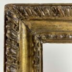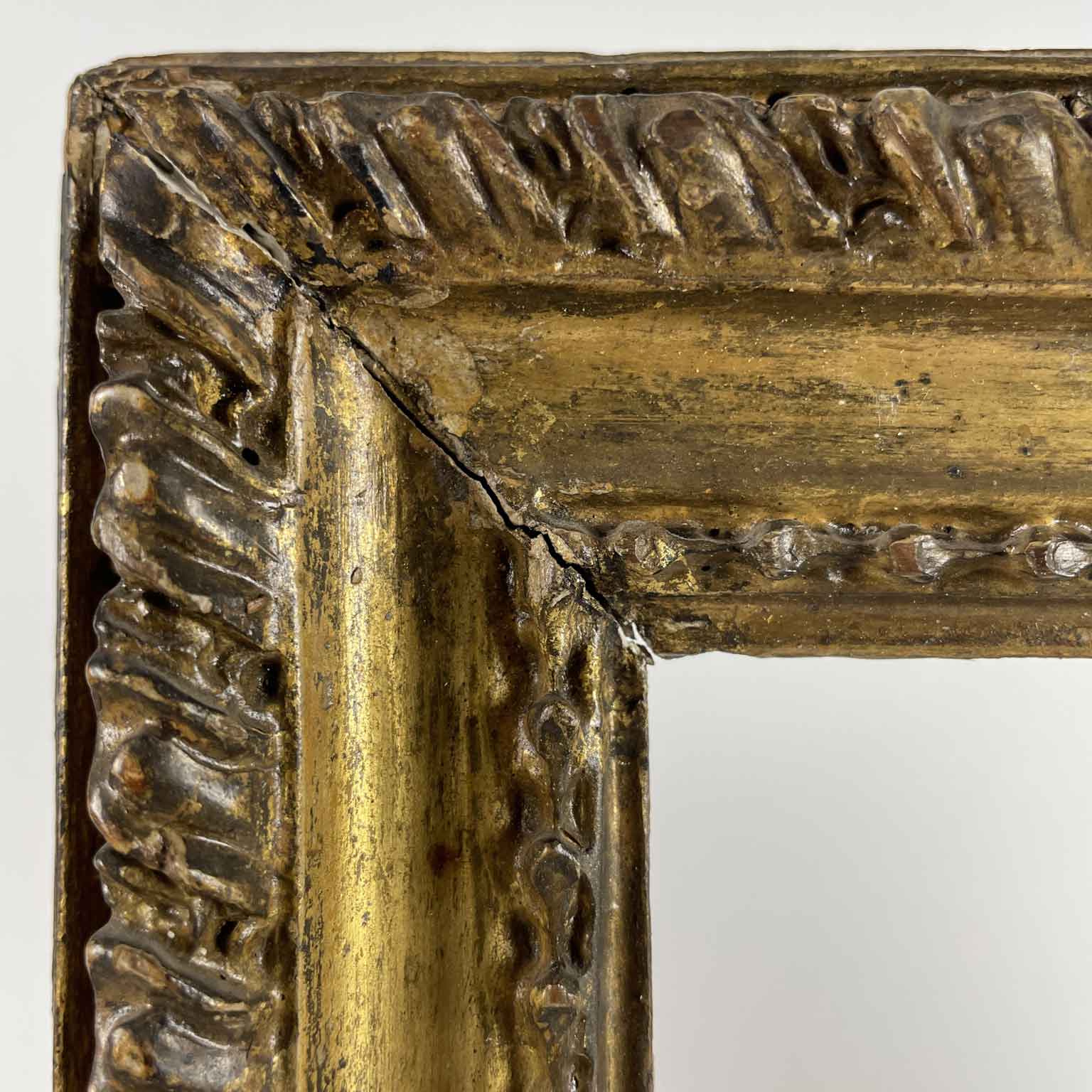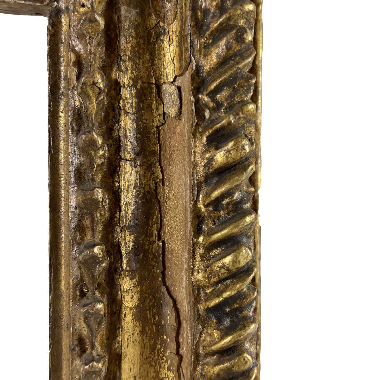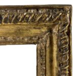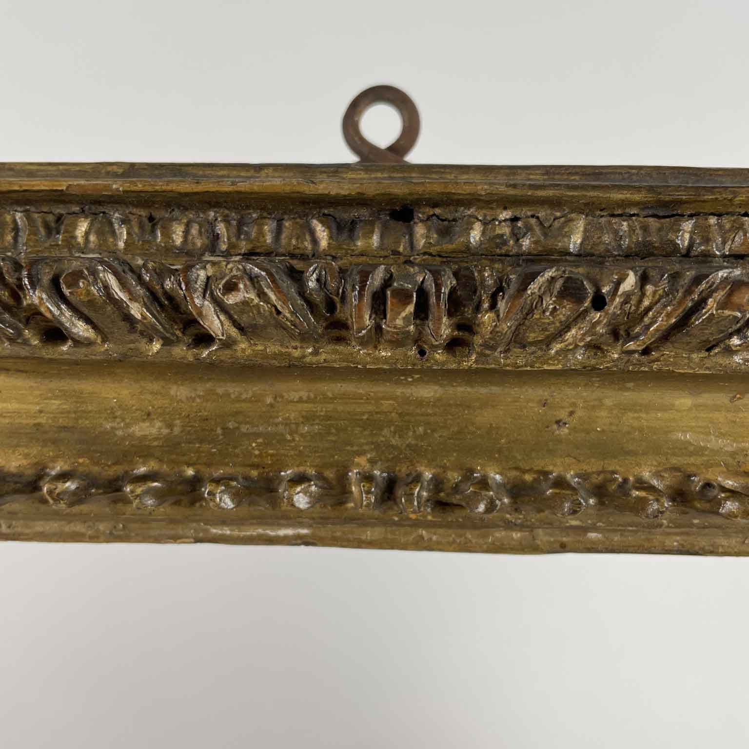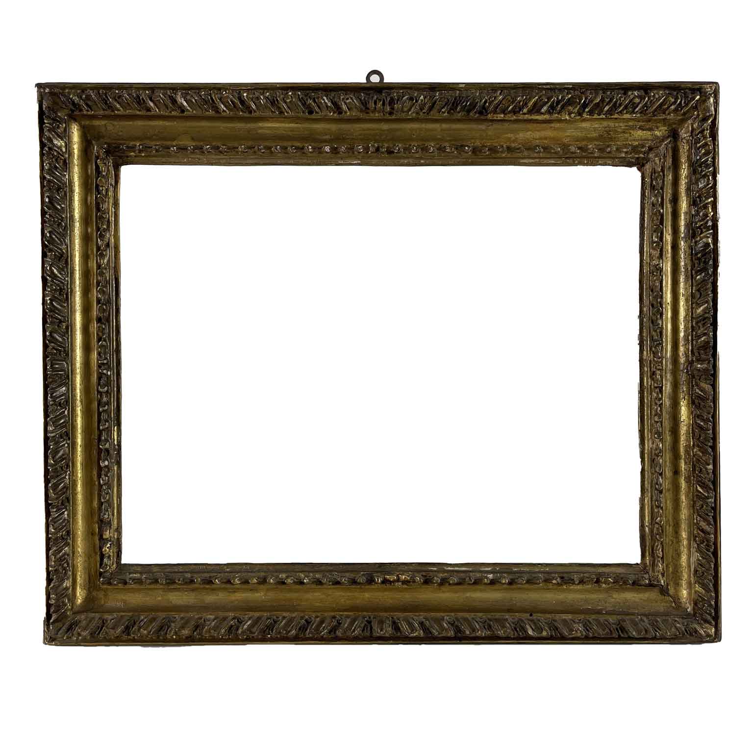 Coppia Cornici Dorate Romane 1700, rara coppia di antiche cornici Impero in legno intagliato e dorato, Roma XVIII secolo. Di forma rettangolare, a tre ordini di intaglio con bordure e ovoli,, questo pendant di cornici antiche romane è destinato  a opere grafiche, stampe o disegni antichi, considerandone l’esigua battuta interna di 1 cm.