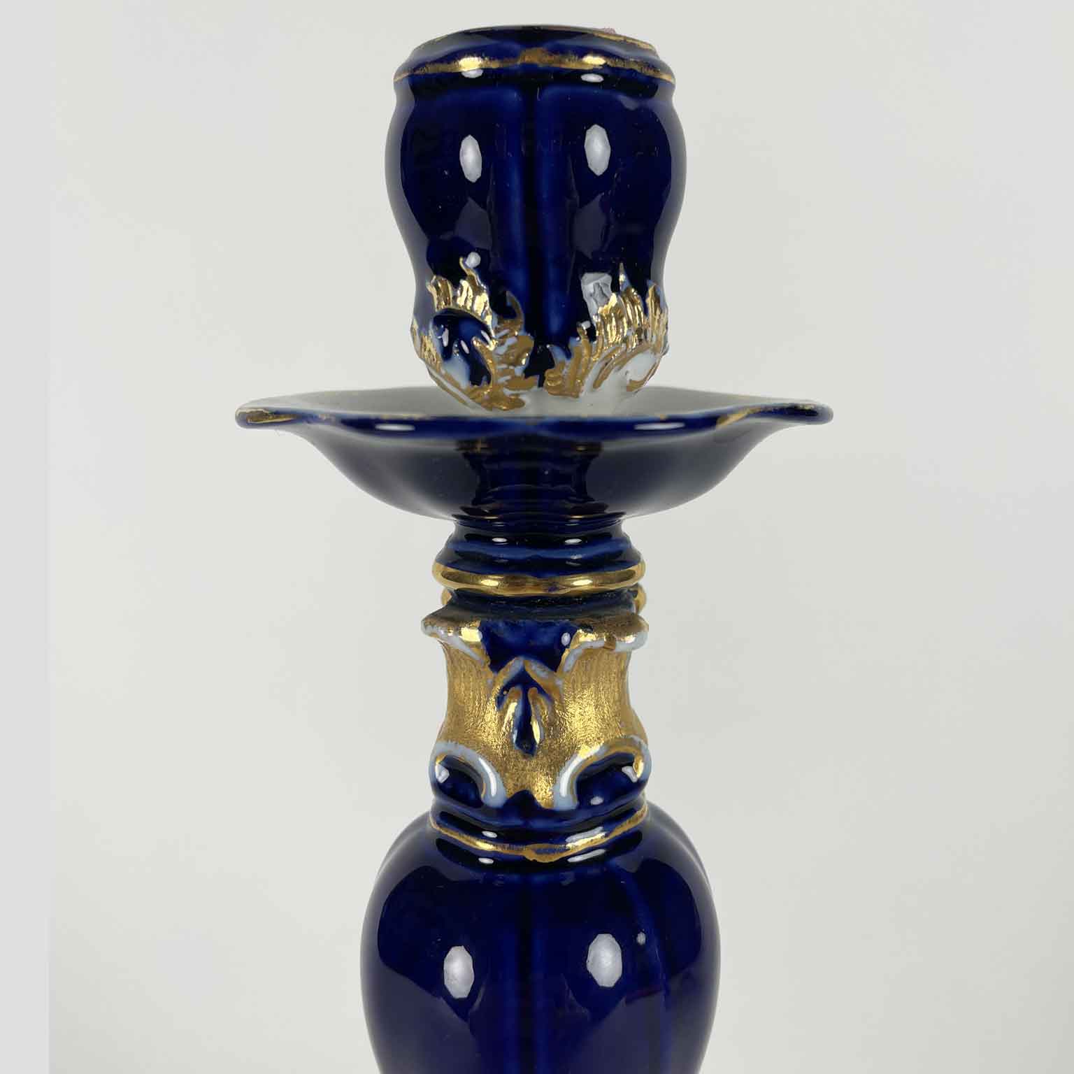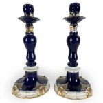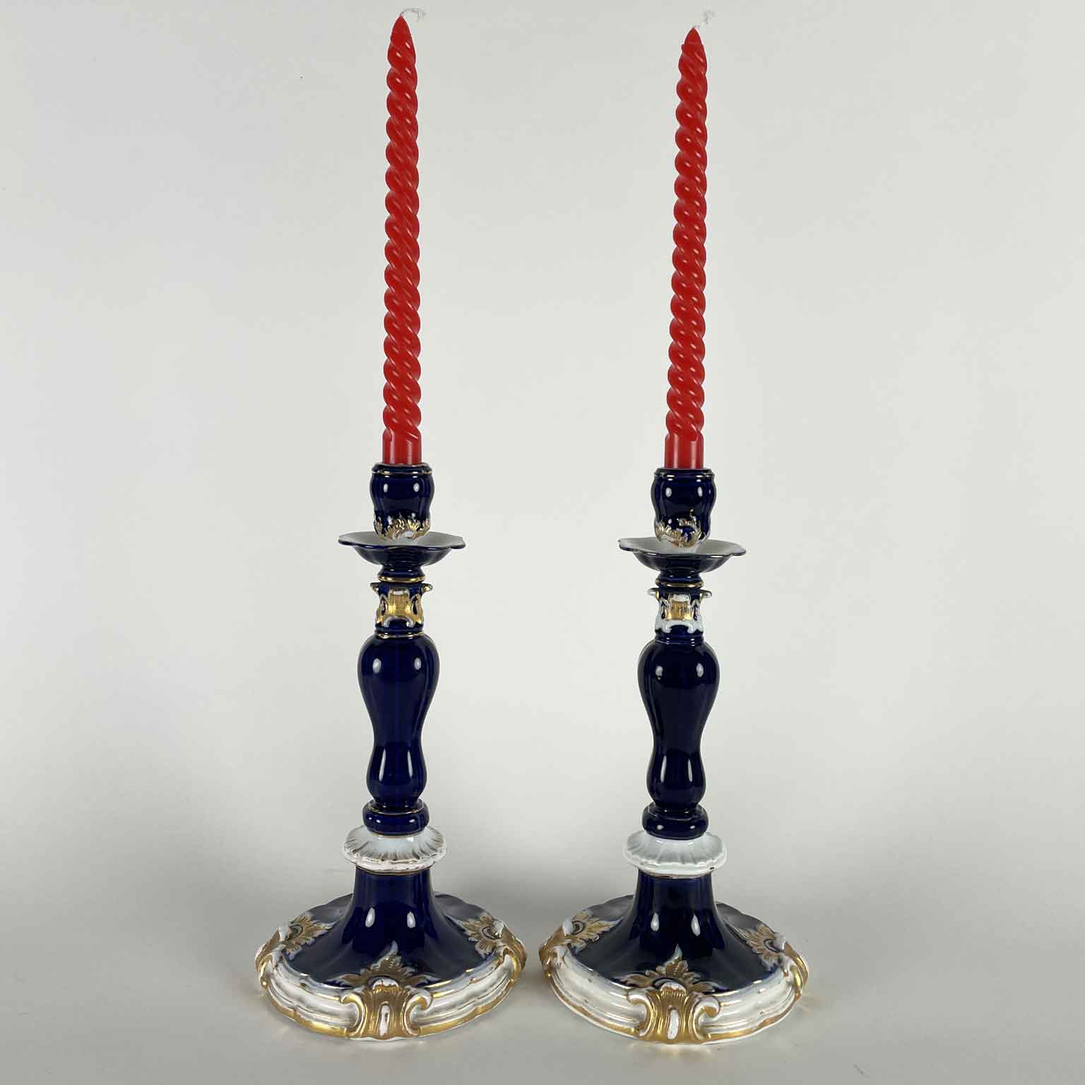 Coppia Di Candelieri Meissen Blu E Oro XIX Secolo