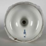 Ogni candelabro reca sul fondo il marchio blu sotto smalto con le spade incrociate di Meissen.