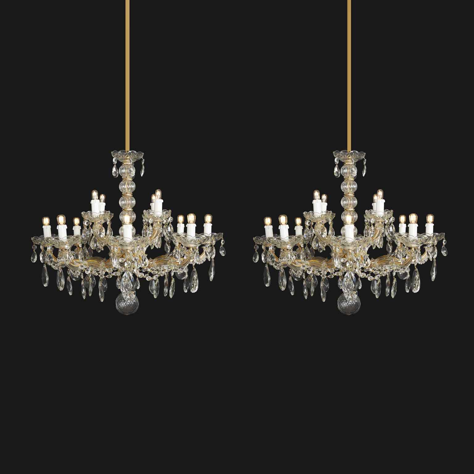 Coppia Di Lampadari Maria Teresa A Dodici Luci 1950
