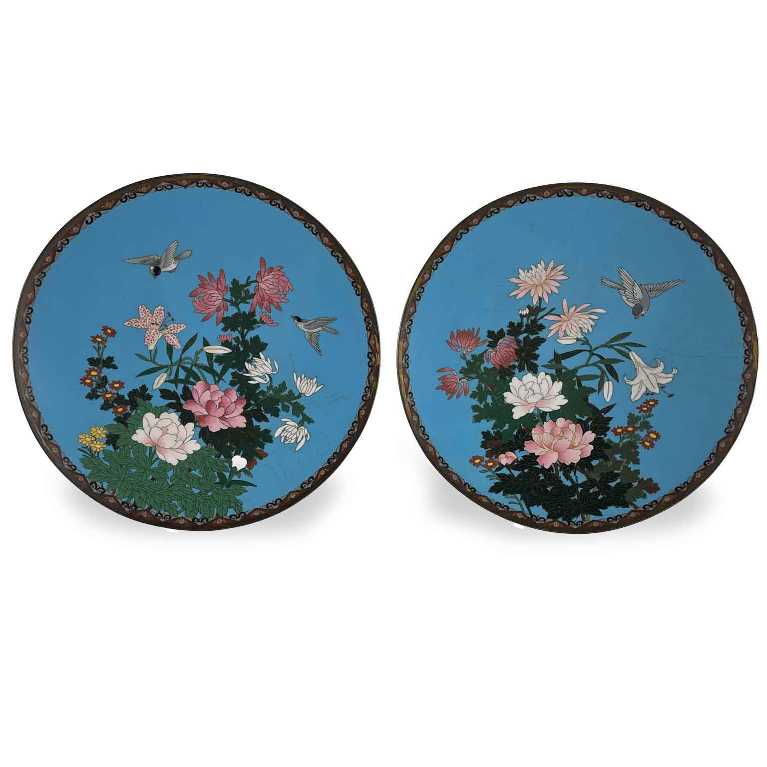 Coppia Di Piatti Cloisonne Giapponesi Periodo Meiji 1868-1912