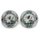 Coppia Di Piatti In Maiolica Con Decoro Al Garofano Manifattura Ferniani Faenza dipinti in policromia, nei toni del blu, bruno, giallo, rosso, arancio e verde.