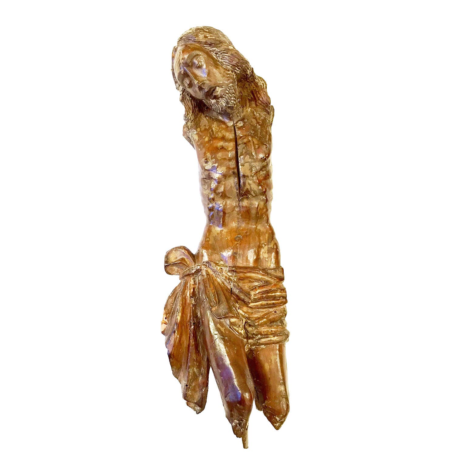 Cristo Crocefisso del 1700 intagliato in legno di cipresso e privo degli arti superiori e parzialmente inferiori. Questa antica scultura religiosa risale all’inizio del XVIII secolo, è di provenienza italiana e si presume che in origine fosse laccata.