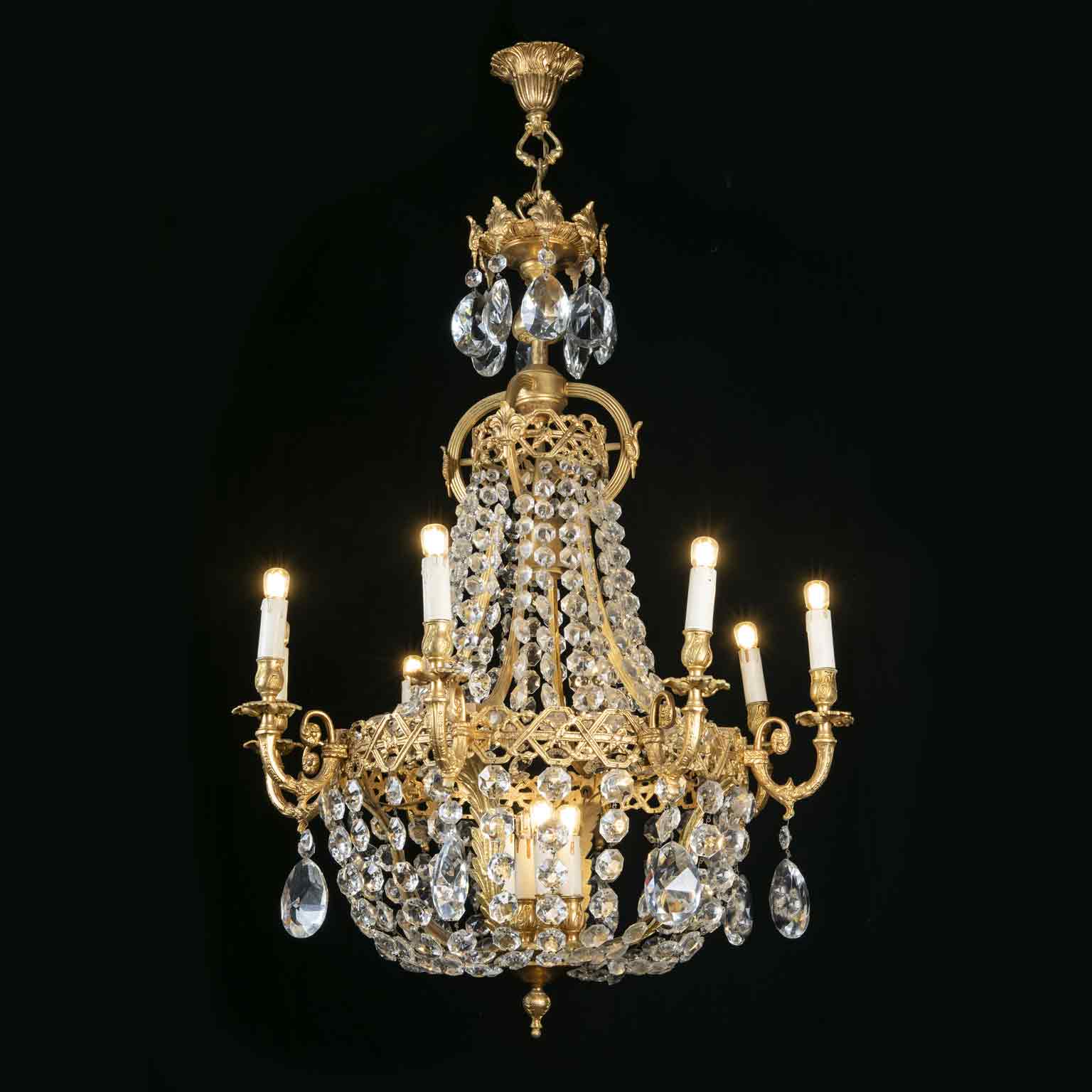 Lampadario in Bronzo Dorato e Cristallo Stile Impero
