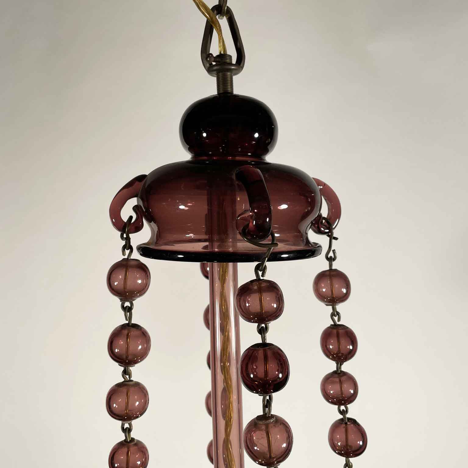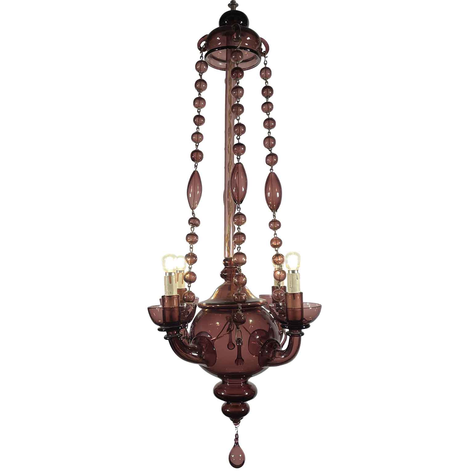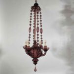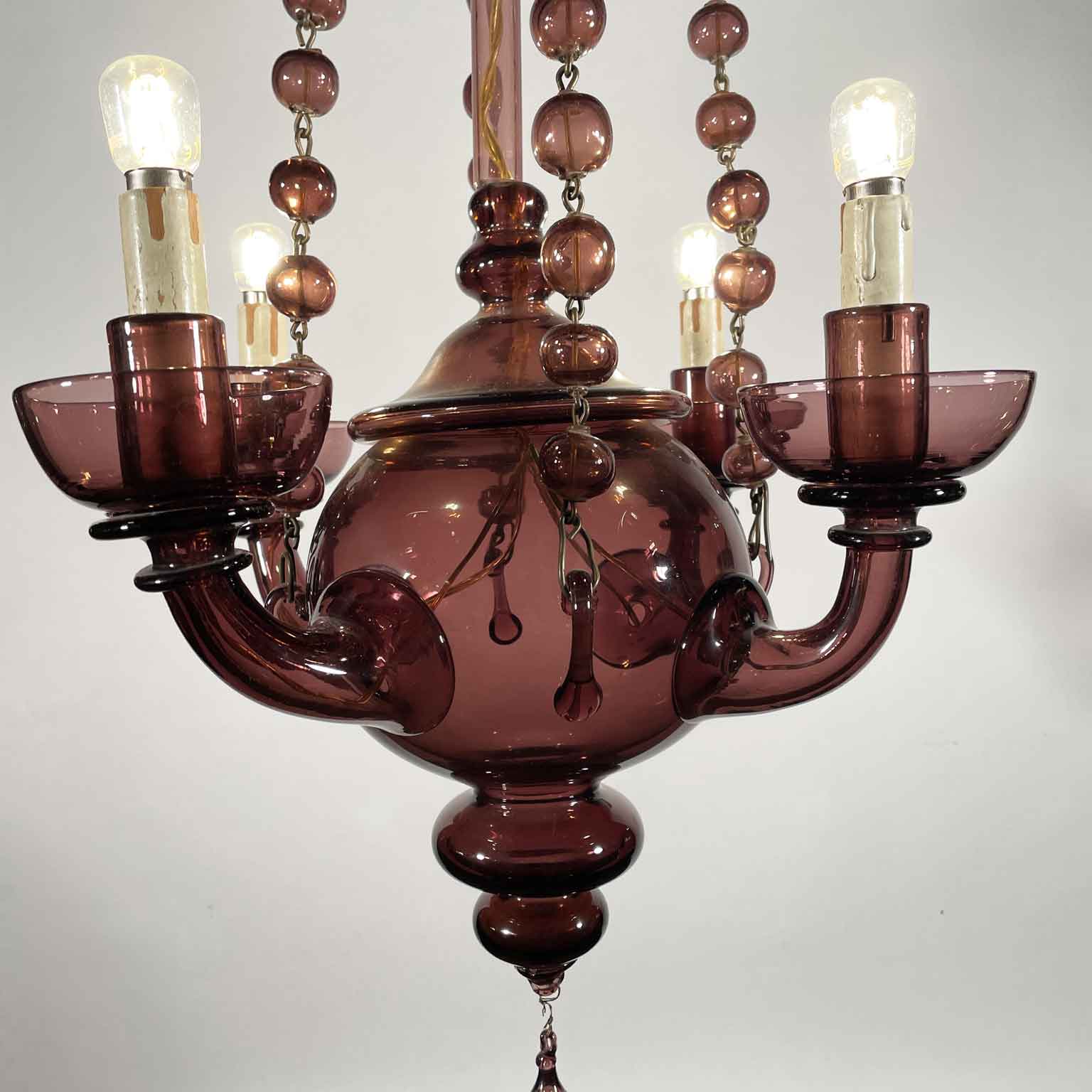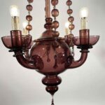 Lampadario Veneziano In Vetro Soffiato Color Ametista Primi 1900