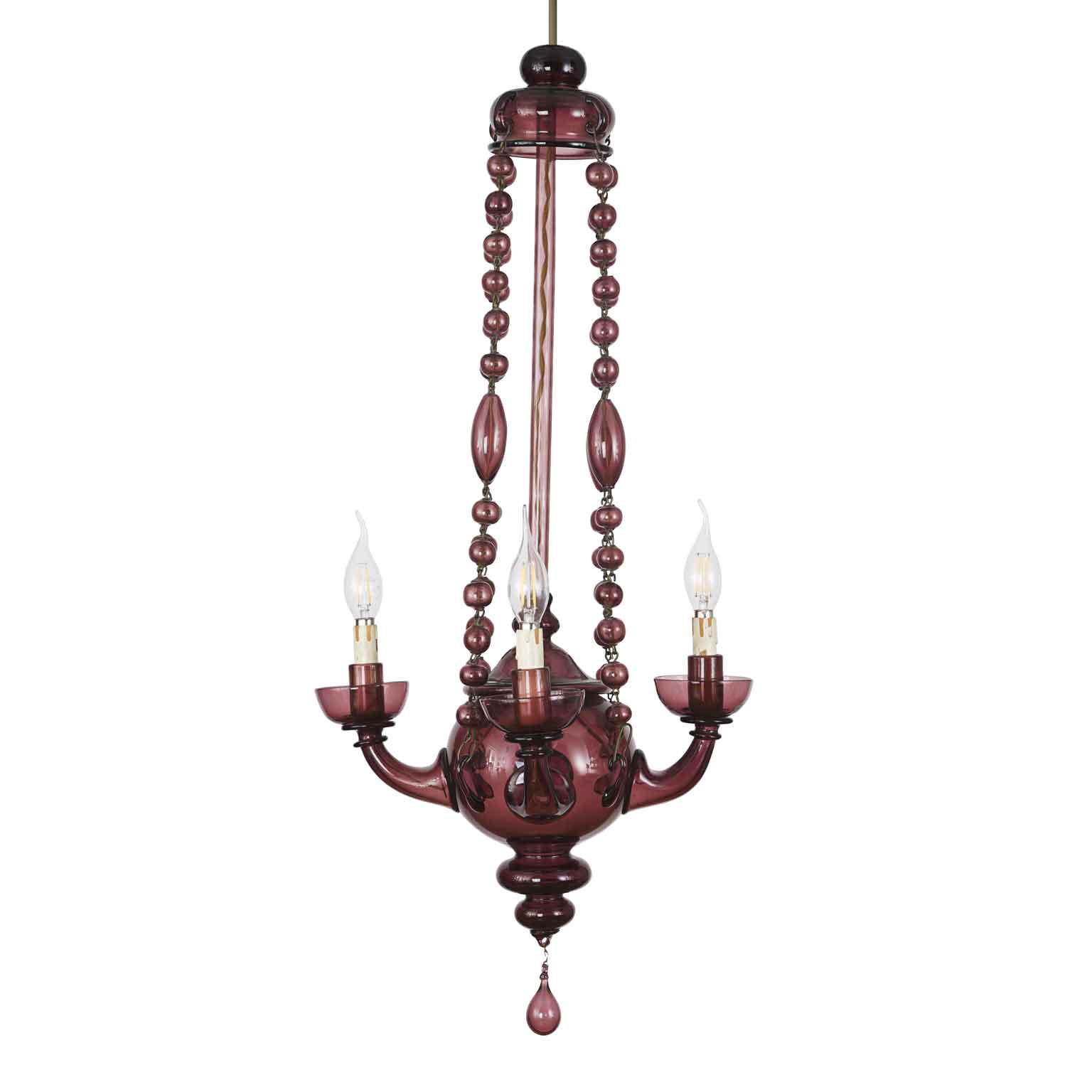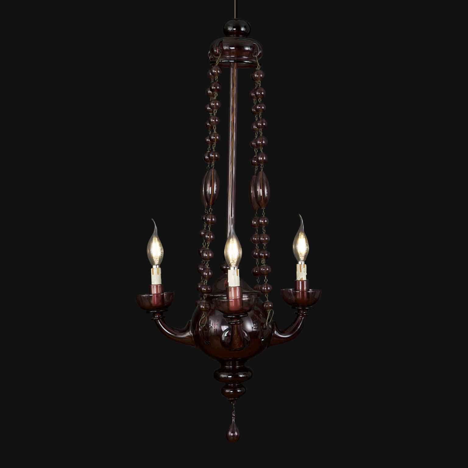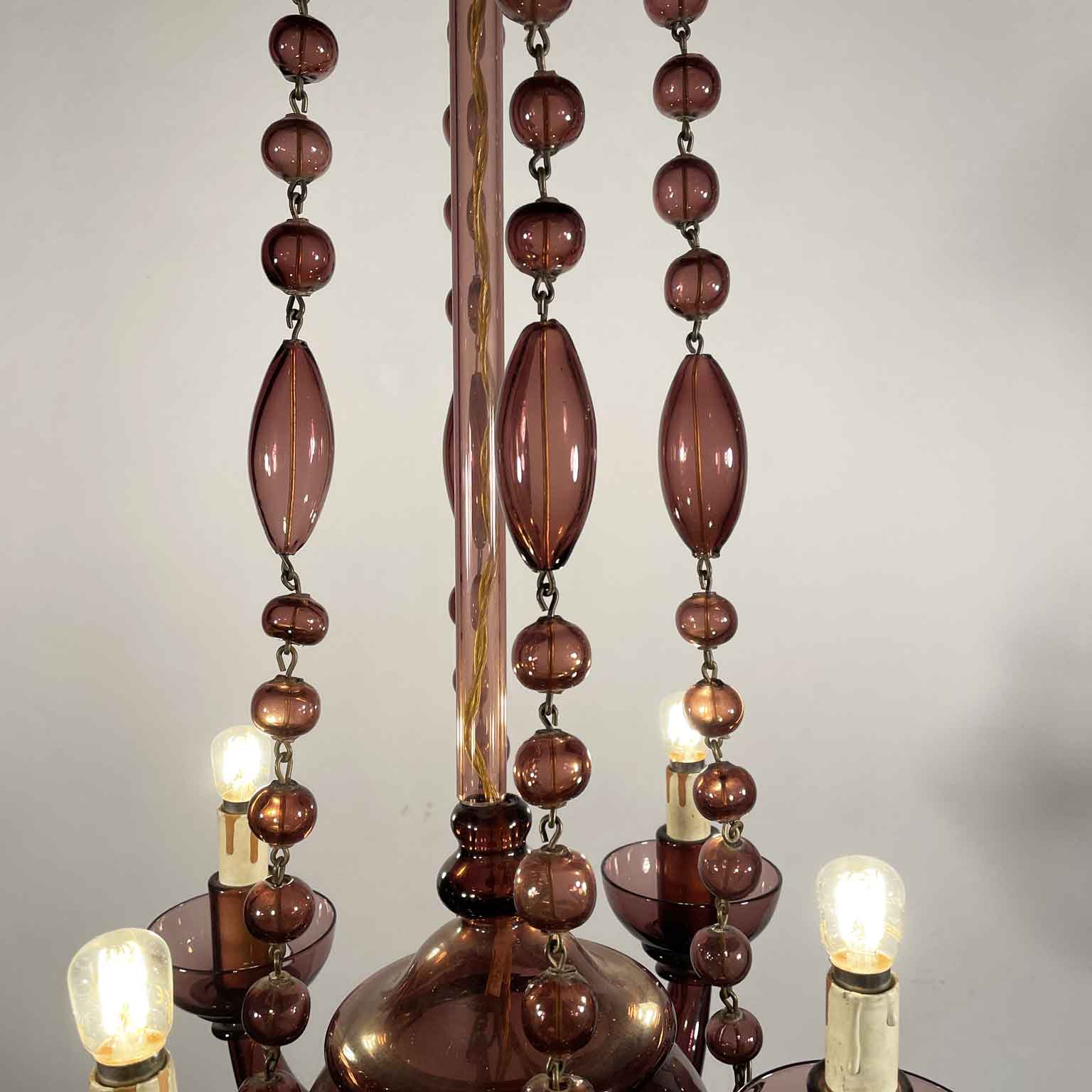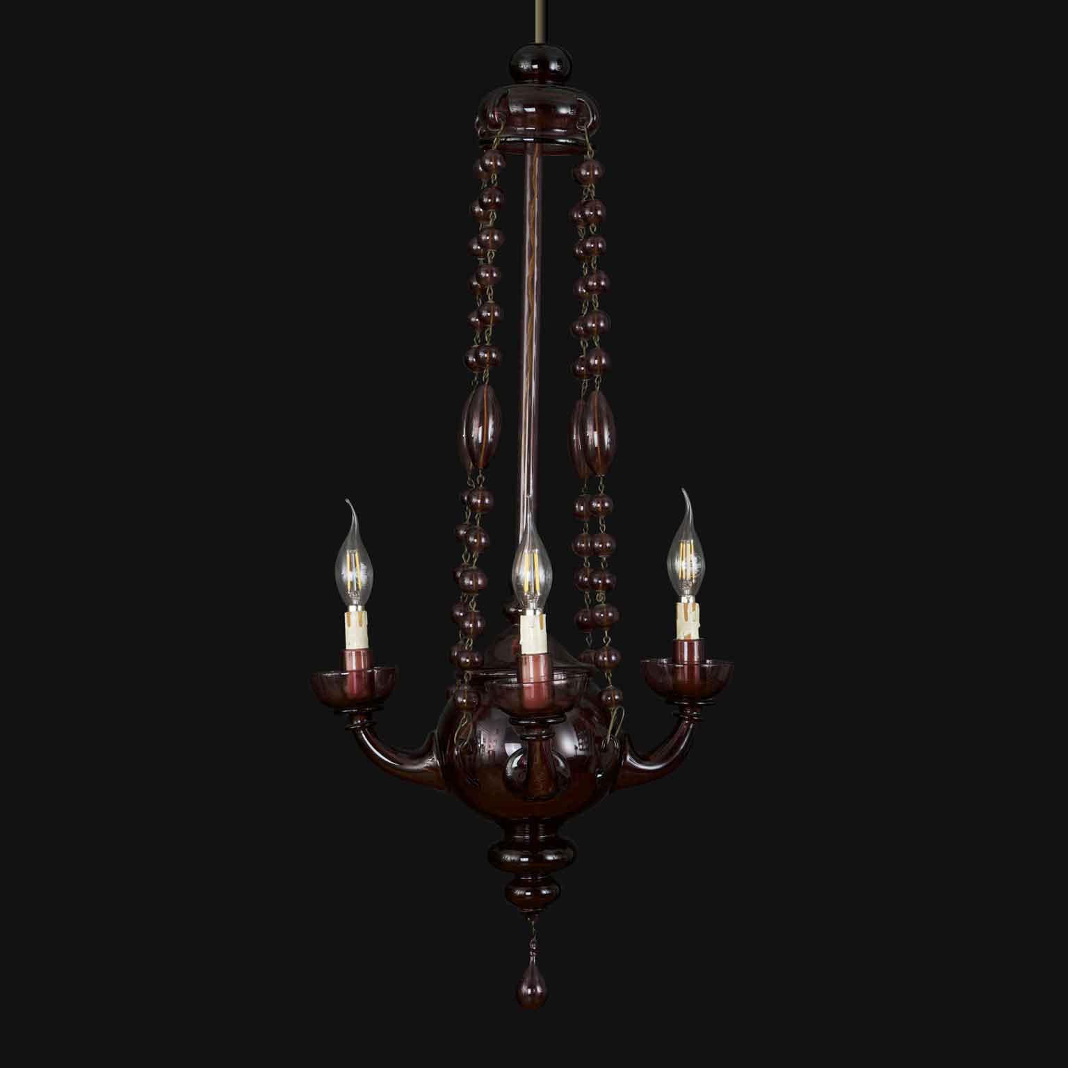 Lampadario Veneziano In Vetro Soffiato Color Ametista Primi 1900
