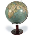 Mappamondo Welt Wegweiser 1950 circa pubblicato e curato dal dr. Sandro Limbact e pubblicato e curato da O. Gracklauer a Lipsia. Il mappamondo mostra la suddivisione politica del mondo, con i confini dei vari paesi e le denominazioni delle nazioni. È un importante strumento cartografico che fornisce informazioni sulla geografia politica globale e viene utilizzato per scopi educativi e di ricerca. La mappa è stampata su dodici spicchi, applicati su una sfera di cartone, il mappamondo ruota su un asse centrale ed è sorretto da un piedistallo in legno tornito. Sulla base in legno tronito troviamo una bussola incastonata. Nonostante dei segni di usura come visibile nelle foto della galleria, questo mappamondo antico è un ottimo elemento di arredo, interessante anche dal punto di vista storico geografico, collezionistico e antiquariale. Poco sopra le isole Hawaii troviamo la legenda scritta in tedesco. In buono stato di conservazione è montato su di una base in legno tornito.