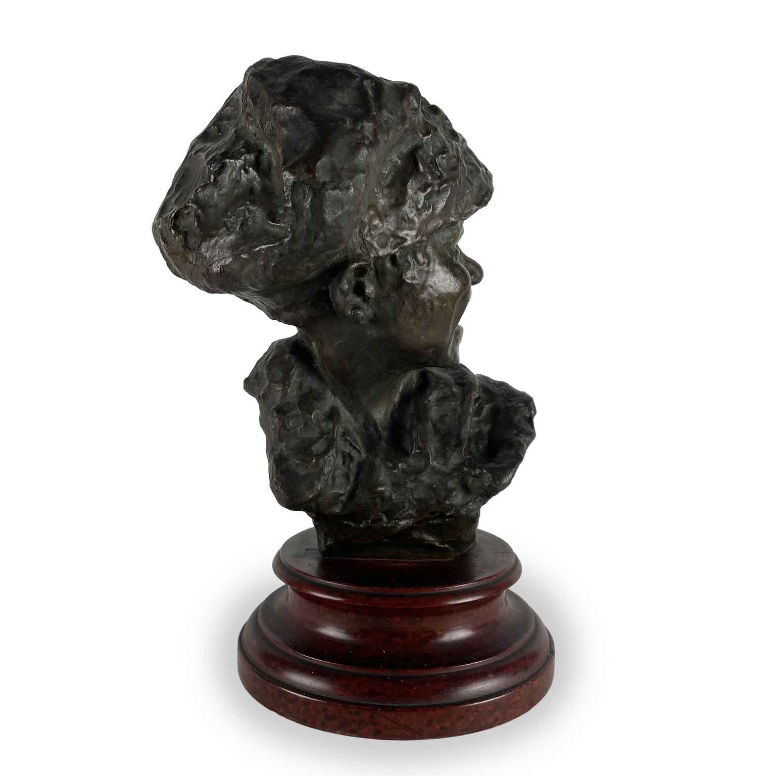 Medardo Rosso Il Birichino Primi 1900 ritratto del busto di un ragazzino montato su di una base in legno tornita ed ebanizzata. In buono stato di conservazione è firmato in stampatello sulla spalla sinistra M.Rosso. La fusione risale alla prima metà del 1900.
