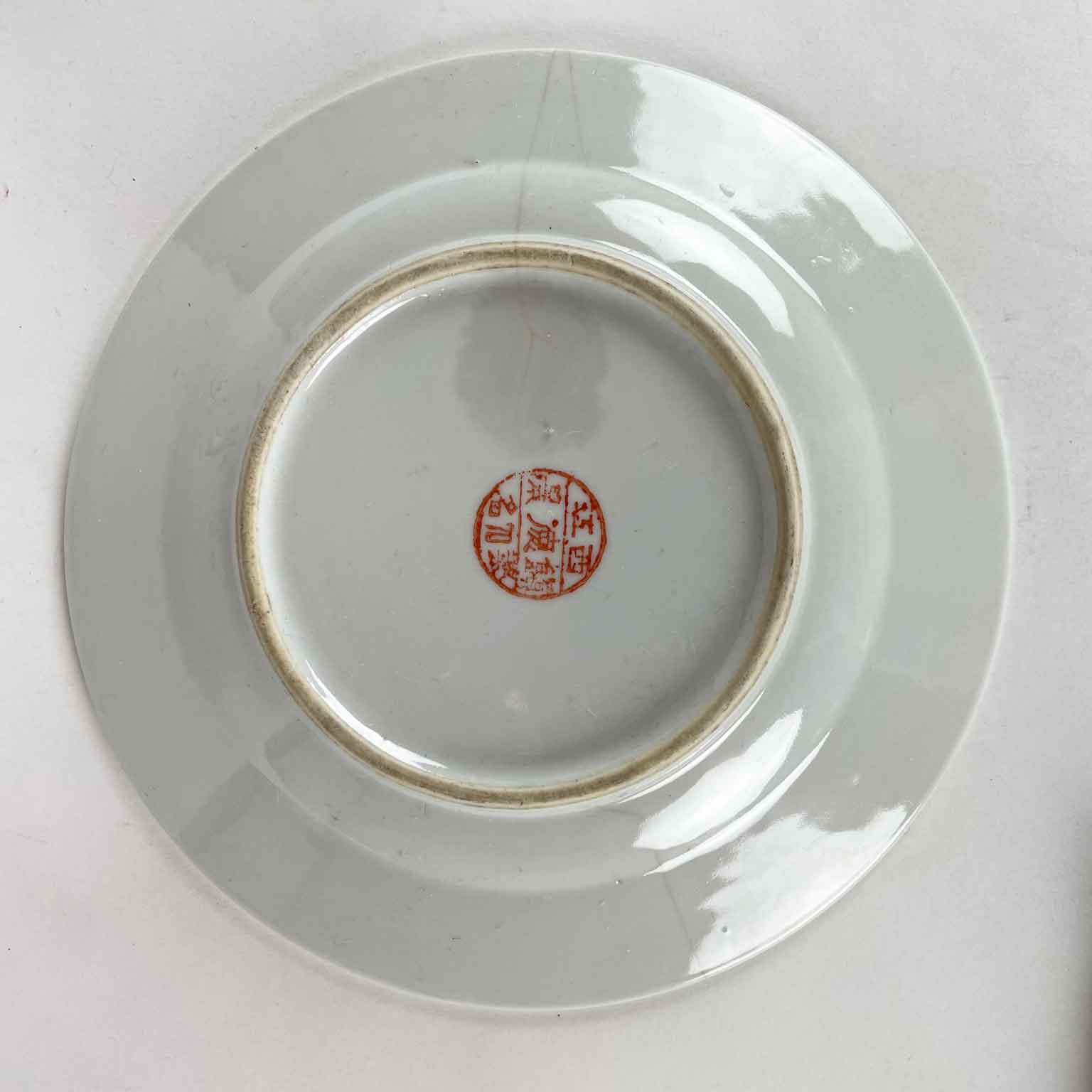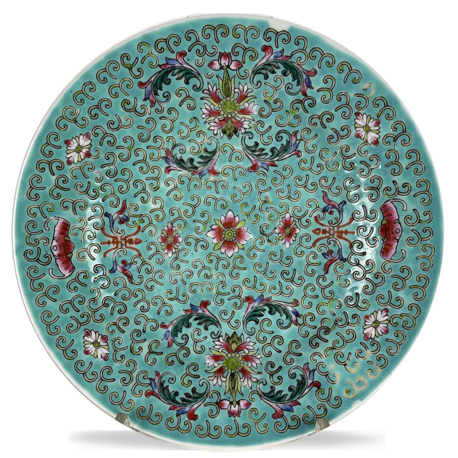 Piatto Cinese A Fondo Verde In Porcellana Riccamente Decorato