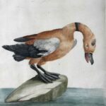 Saverio Manetti Anatra Salvatica 1770 circa tratta dall’opera Ornitologia methodica digesta atque icomibus atque iconibus aeneis ad vivum illuminatis ornata… Storia naturale degli uccelli trattata con metodo ed adornata di figure intagliate in rame e miniate al naturale edita in Firenze presso la stamperia Monchiana ad opera di Saverio Manetti e Violante Vanni nel 1767-1776. Il foglio misura mm. 450 x 350 con ampi margini (mm. 450 x 350) questa antica acquaforte acquerellata a mano è in buono stato di conservazione e si presenta entro cornice moderna. In alto troviamo il numero della tavola in numeri romani DLXXI e la descrizione della specie Anatra salvatica detta Germano forastiero – anas boschas Major mentre in basso i ringraziamenti al finanziatore A Sua Eccel.za il Sig.re Marchese Carlo Molinari Patrizio Milanese ec.