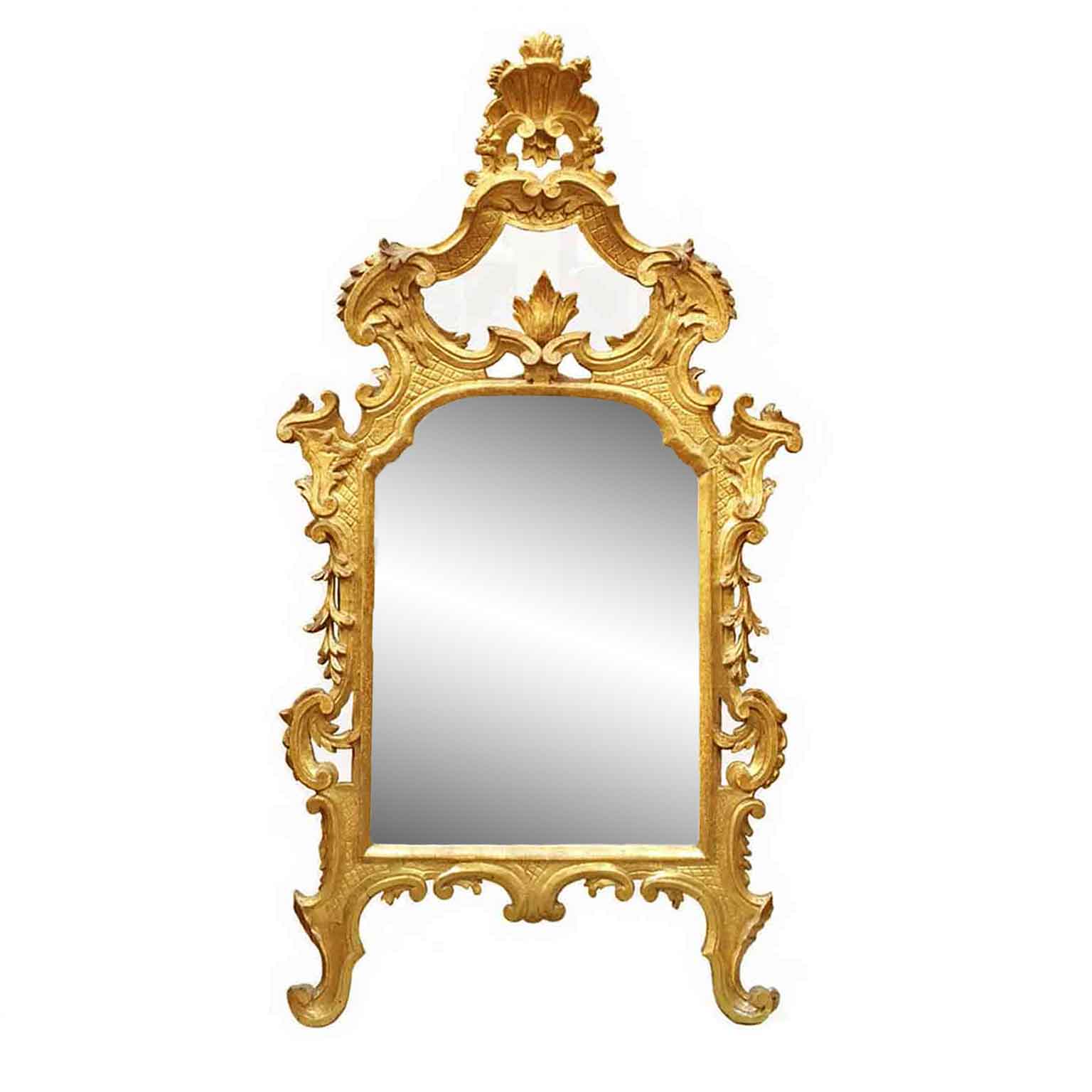 Antica specchiera dorata Luigi XV in legno intagliato. Di provenienza toscana e precisamente lucchese, questa specchiera d’epoca risale al terzo quarto del 1700 e si presenta in ottimo stato, con minimi difetti compatibili con la datazione settecentesca.