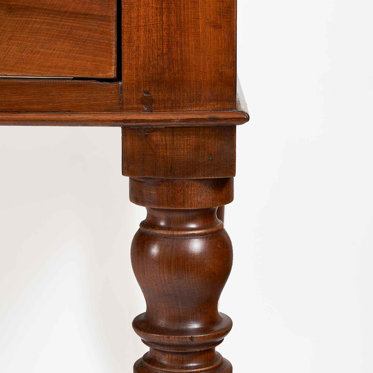 Tavolo da Pranzo Rettangolare in Noce con Cassetti 1800 perfettamente restaurato con finitura a gomma lacca e cera con un bel piano composto da quattro tavole in massello di noce dello spessore di tre centimetri; le traverse e le gambe tornite sono anche loro in legno di noce. Due ampi cassetti foderati internamente in carta Varese sono posti in corrispondenza del lato più lungo. Questo tavolo è estremamente solido data la qualità del materiale impiegato e risale alla seconda metà del 1800 di provenienza lombarda. Rappresenta la tipologia più classica e domestica del tavolo da pranzo o da cucina solamente che anzichè essere realizzato in legno dolce quali il pioppo o l’abete è stato utilizzato un legname più nobile e costoso.