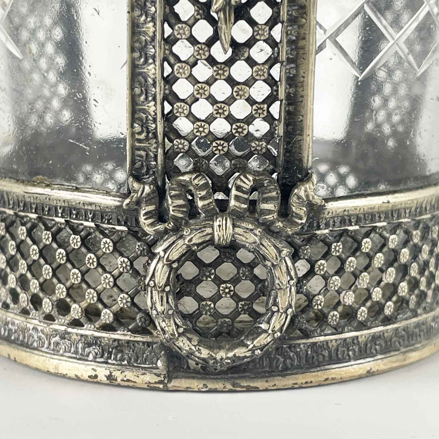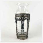 Vaso Da Fiori In Cristallo Molato Con Decorazioni In Metallo Argentato 1920 Circa