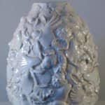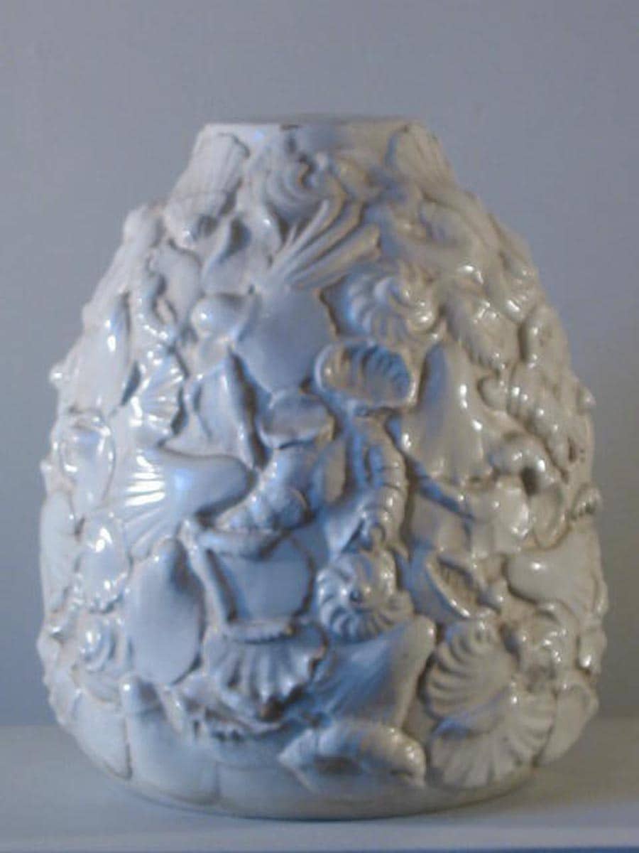 Base lampada in ceramica con conchiglie in rilievo.