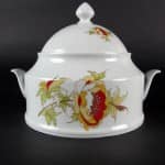 Zuppiera in porcellana bianca con vivace decoro floreale. In perfetto stato. Marcata Ankap